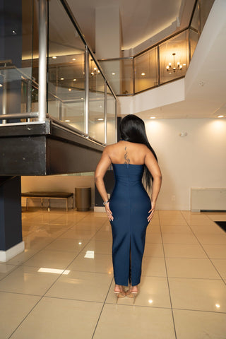 Turn heads the moment you arrive. Our Midnight Siren Ruched Maxi Dress is crafted to sculpt, smooth, and celebrate your curves in the most luxurious way. Designed in a rich deep-navy stretch mesh, this gown features full-body ruching that enhances your silhouette while providing a flattering, elongated shape.