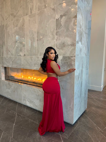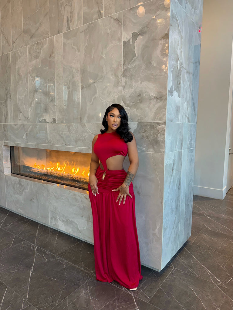 Make an unforgettable entrance in this curve-hugging maxi designed to turn heads effortlessly. Featuring a sleek sleeveless silhouette with a bold waist cut-out, this dress highlights your shape while keeping things elegant and elevated. The soft, stretchy fabric drapes beautifully over the body, flowing into a floor-length skirt that moves with you.